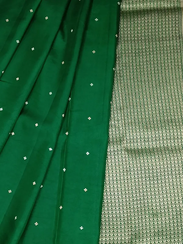 100% Pure Silk Deep Forest Green Banarasi Saree100% Pure Silk Deep Forest Green Banarasi Saree | Handloom Wedding Saree