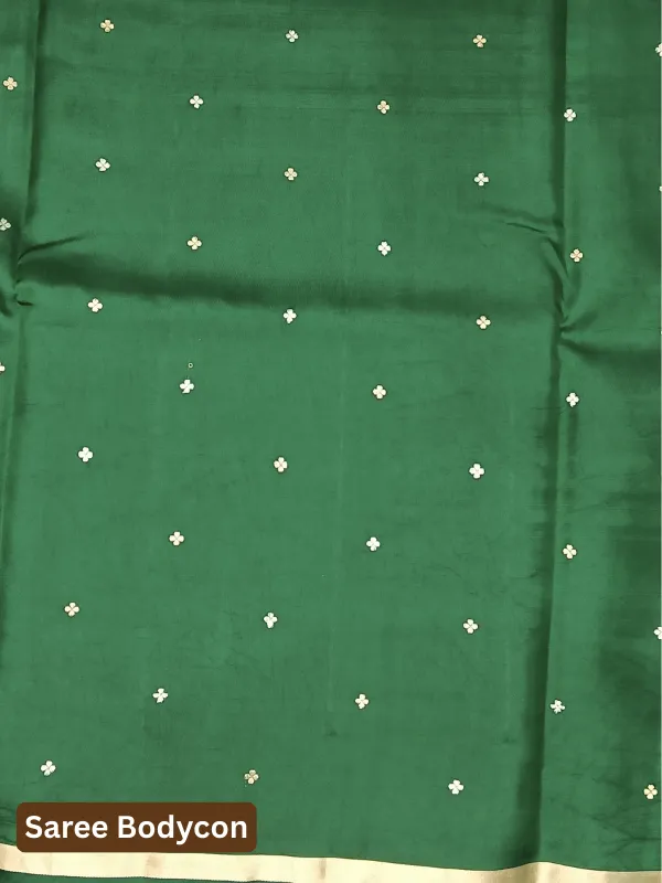A regal 100% Pure Silk Deep Forest Green Banarasi Saree with golden zari weaving. Perfect for weddings, receptions & festive occasions, featuring a smooth drape and lustrous shine.
